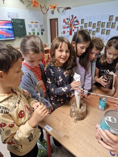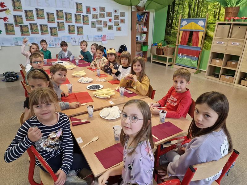 W ramach edukacji zdrowotnej klasa 1 dzieli się przepisem na zdrową nutellę.